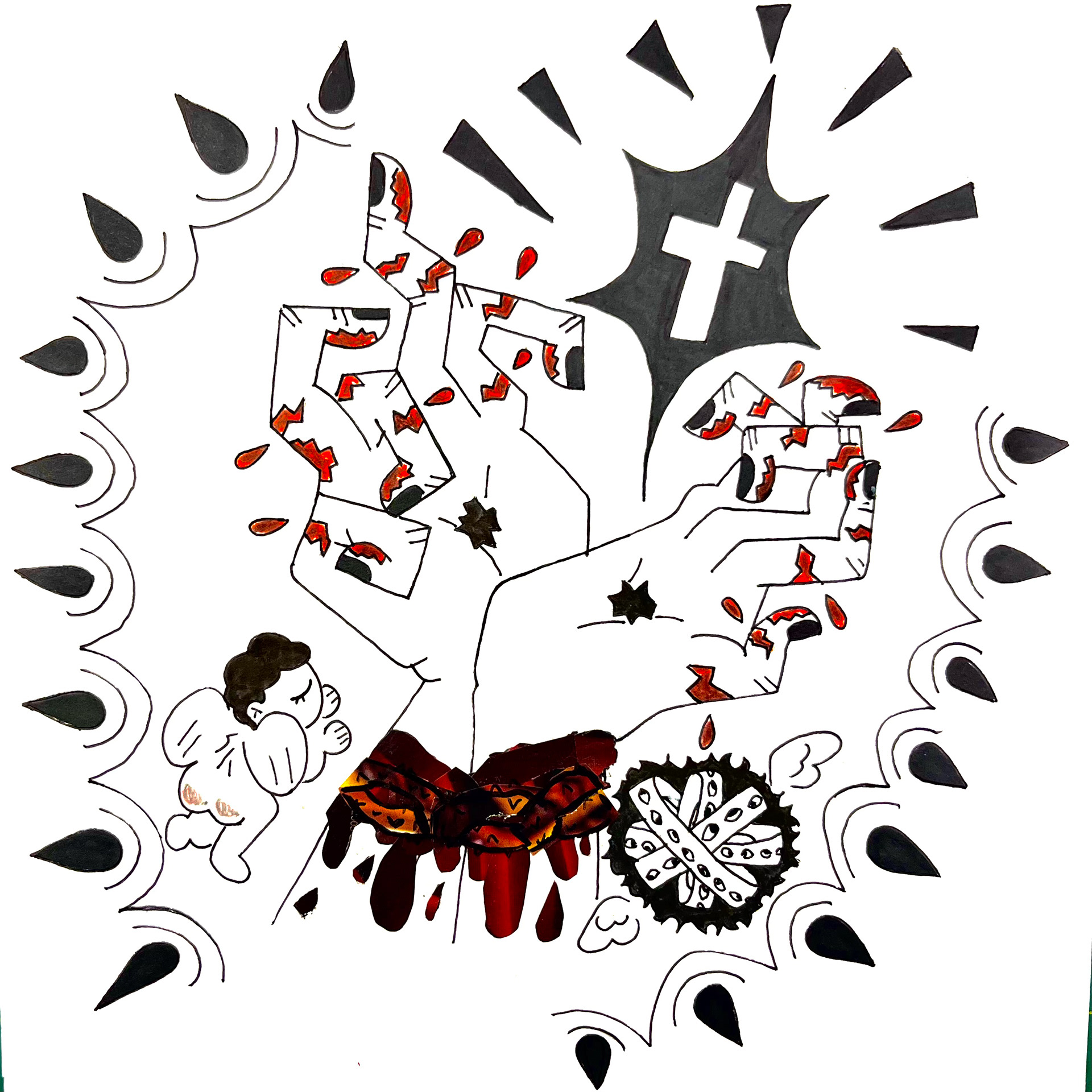 ink, Acrylic, and magazine on white paper